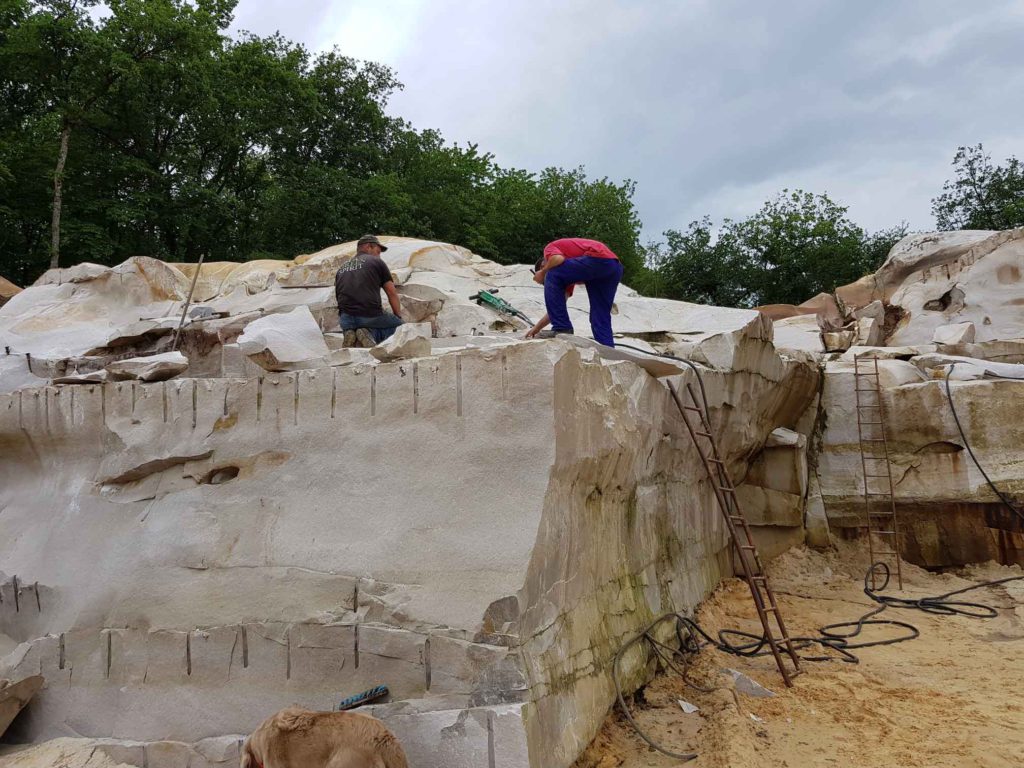 Les Amis du Château de Fontainebleau > > 4 Préparation de la découpe d’un gros bloc mis en ligne le 20 juillet 2018