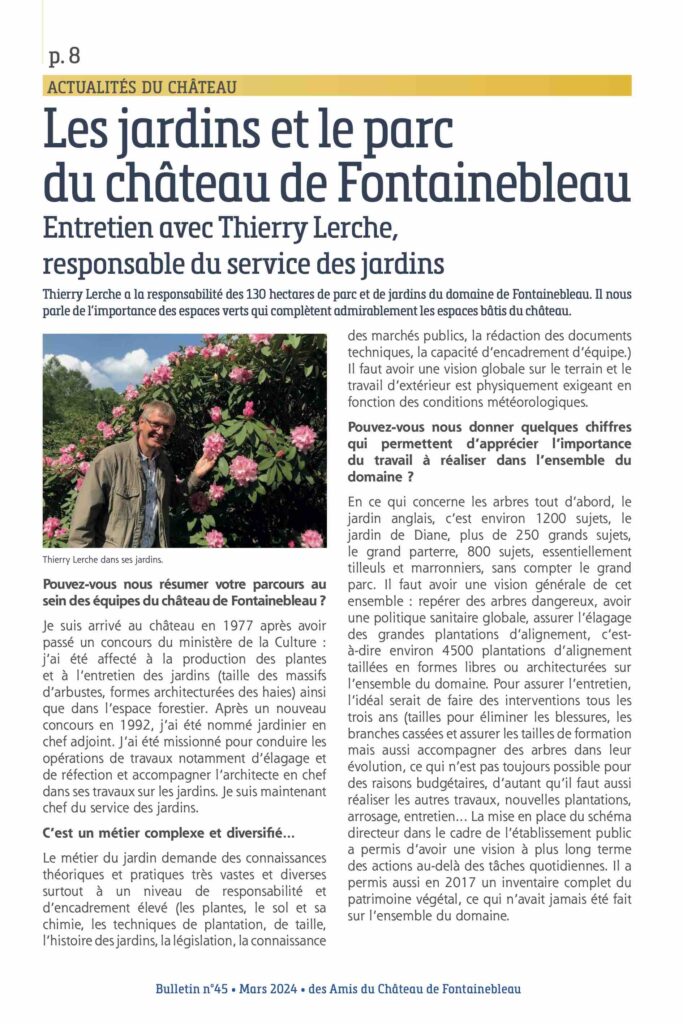 Les Amis du Château de Fontainebleau > Articles divers > Les jardins et le parc du château de Fontainebleau. Entretien avec Thierry Lerche, responsable du service des jardins (propos recueillis par Hervé Joubeaux)